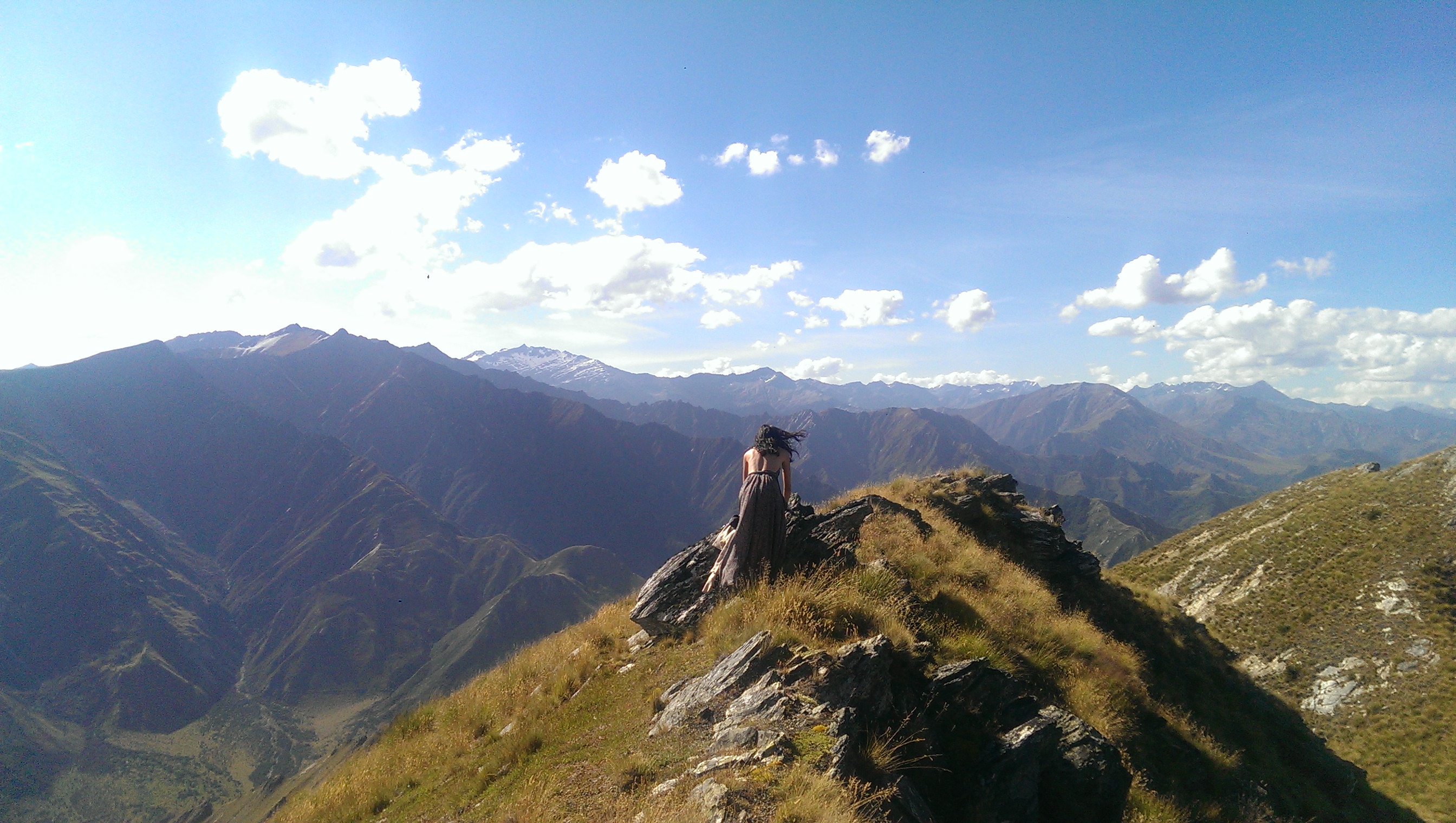 The beautiful surroundings at a New Zealand wedding inexplicably inspired Jen to dash up a closely shorn mountainside in her dress and heels, as I followed in hot pursuit.