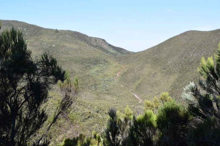 to the low alpine zone, with sparser and lower vegetation, giving us a nice view of our path up the Elephant’s back…
