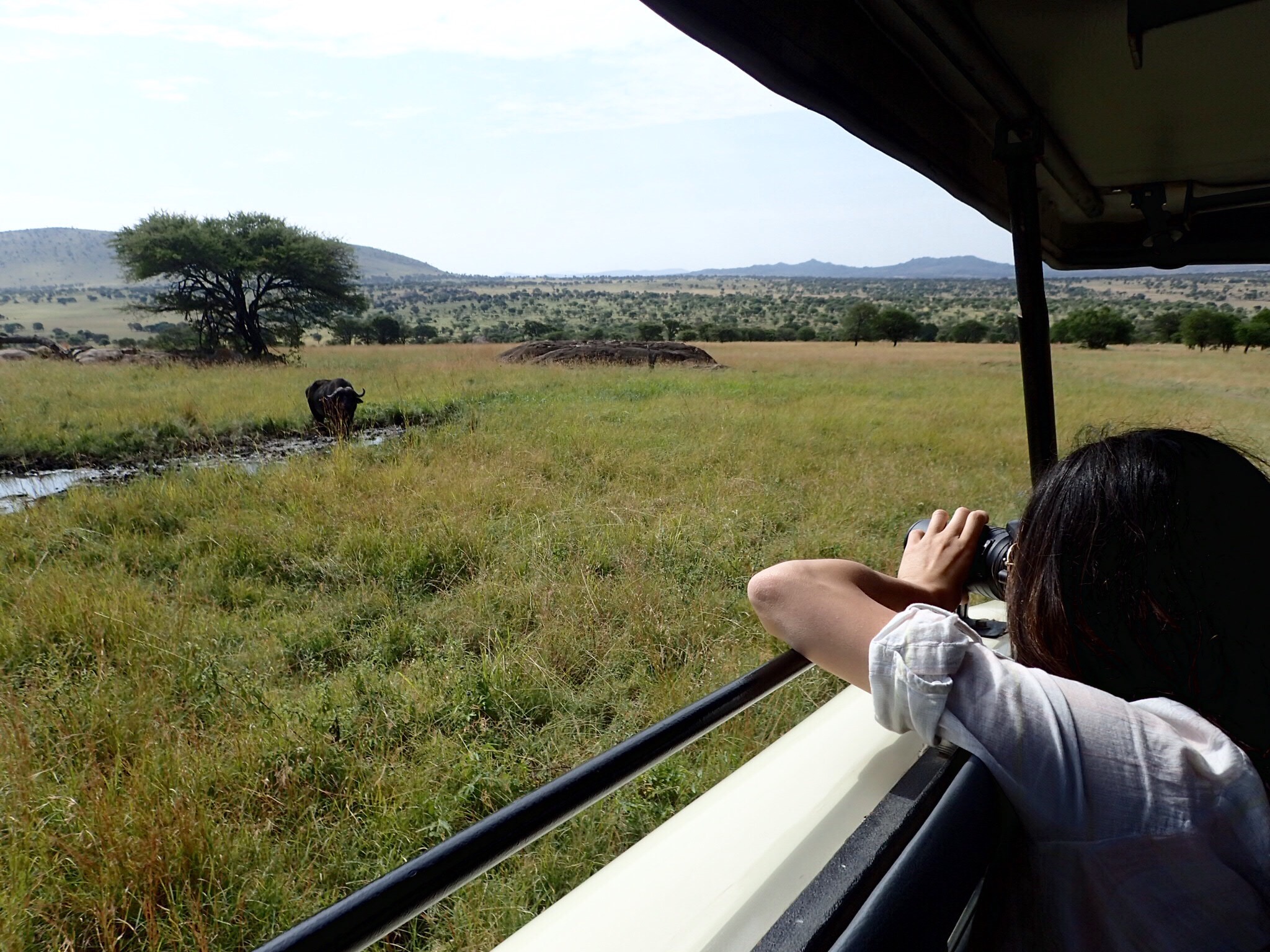After three weeks of roughing it with daily trekking (see welcome to the jungle, dock of a bai, Gorillas in our midst, Kingo, and Kilimanjaro one, two, three, and four) and minimal bathing (see I am a stranger in this part of the jungle), we were really looking forward to running water, 6 days of being driven around to look at animals, staying in relative luxury, and relaxing a little.