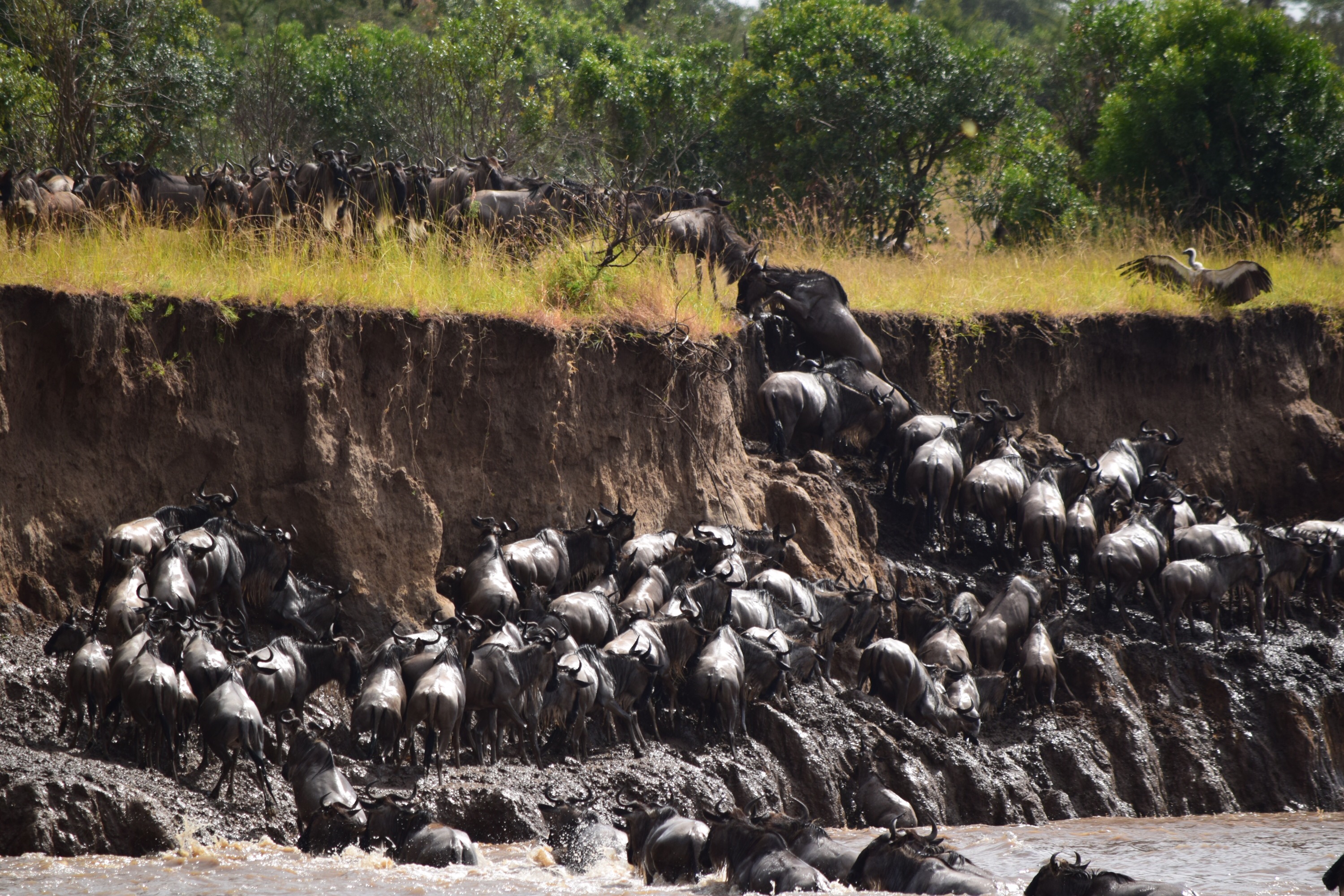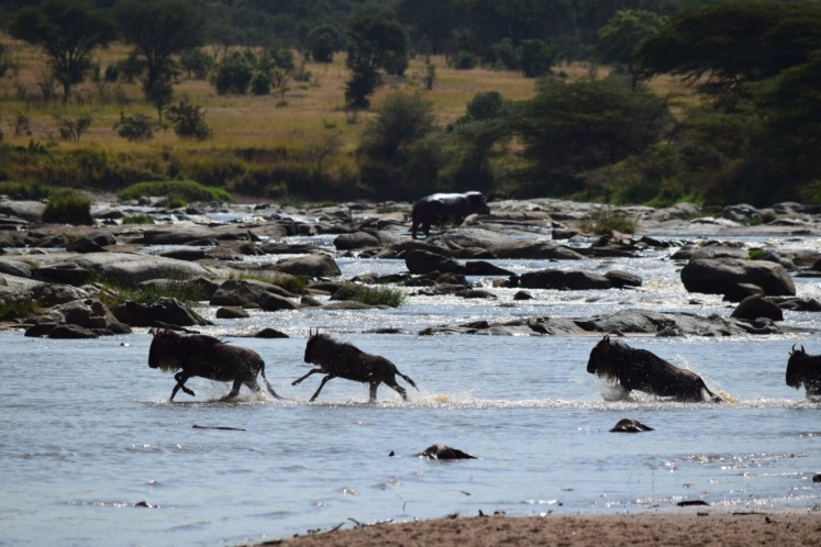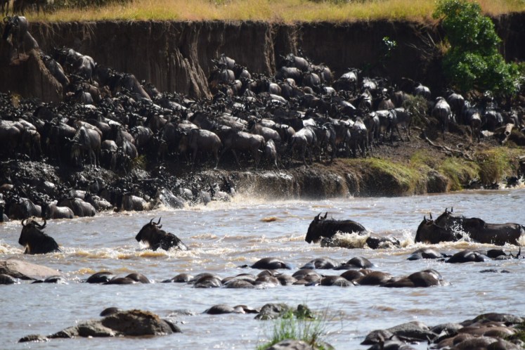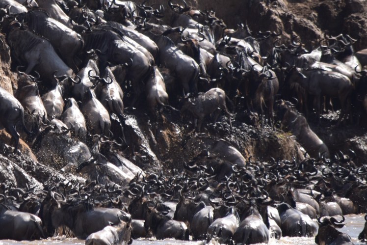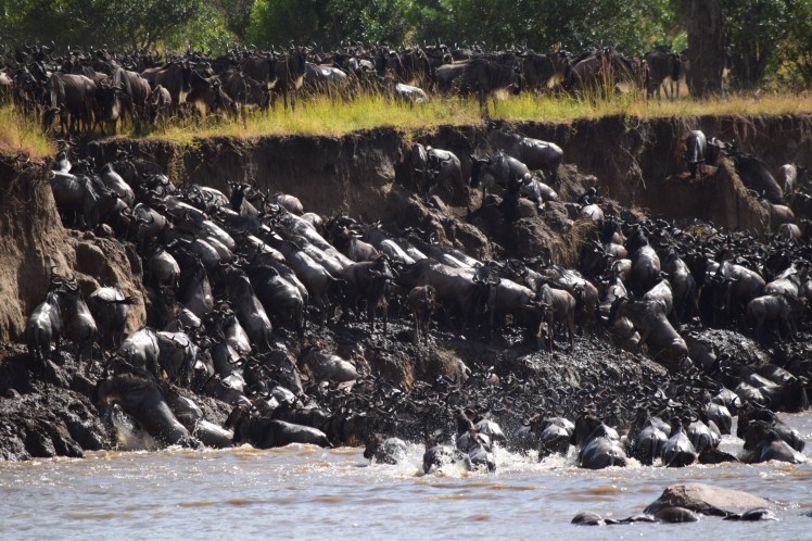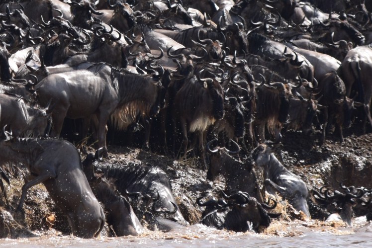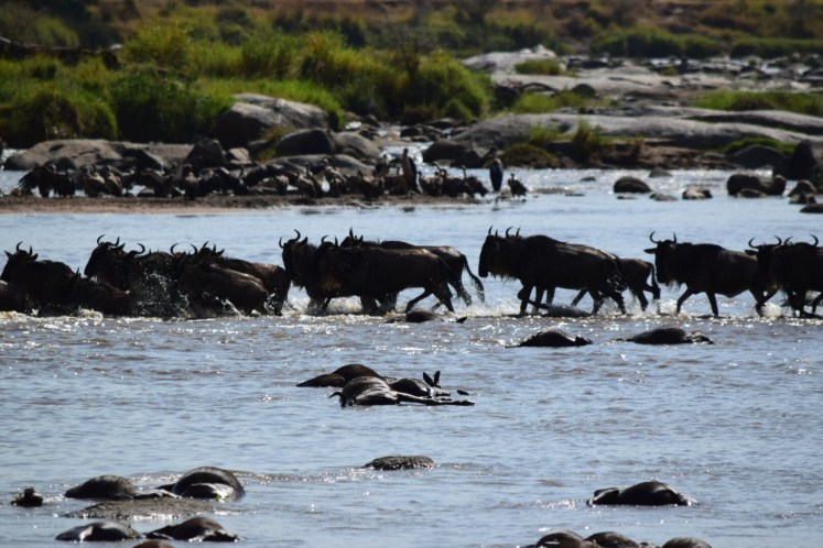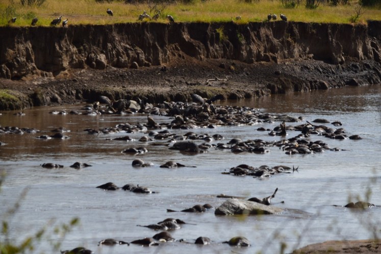 The whole spectacle was so impressive: the hordes of wildebeest lined up on one side, then swimming in water over their heads past scores of dead wildebeest, to join the massive wall of confusion on the other side.