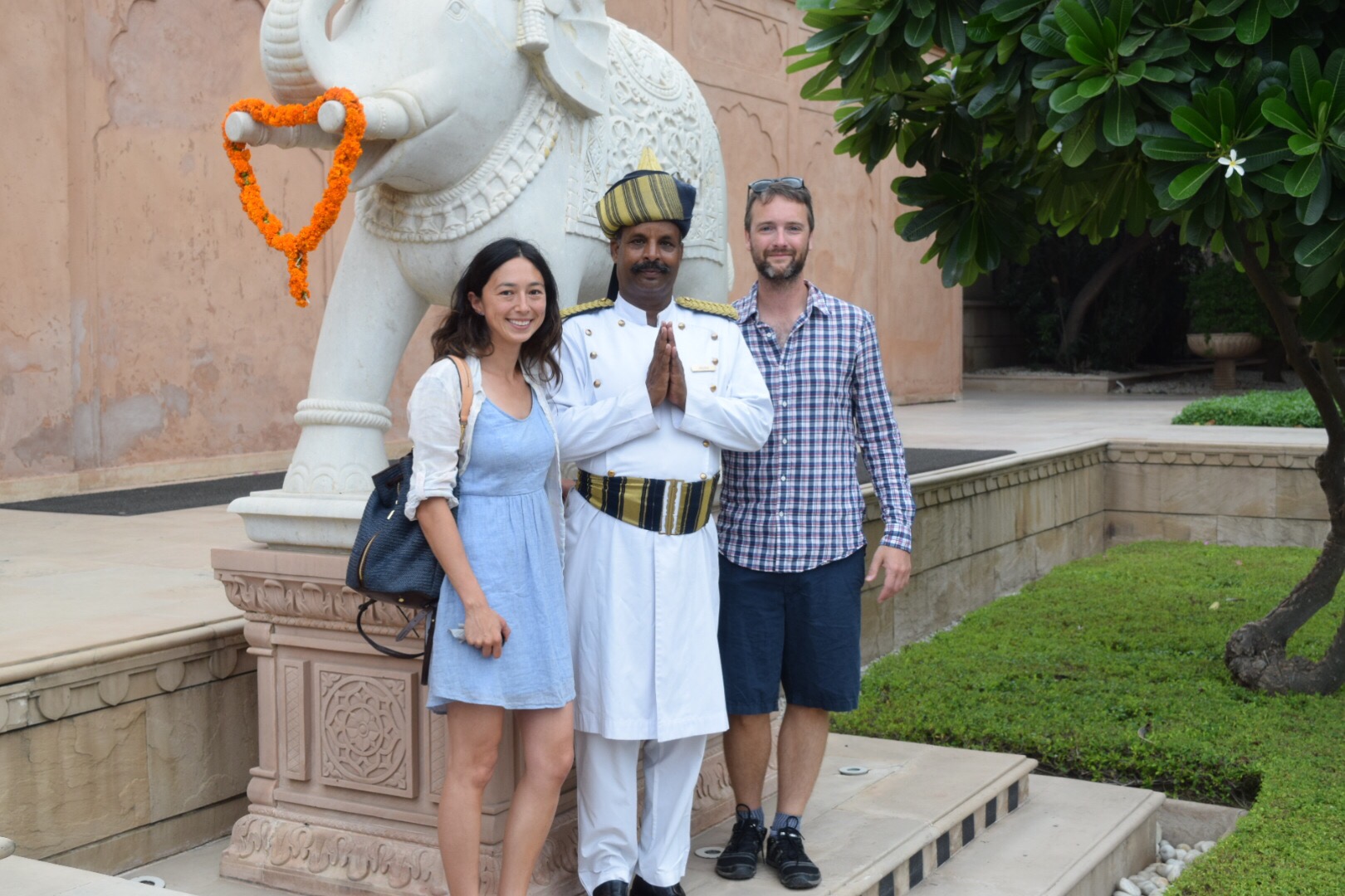 True travel purists would immerse themselves in this. We took the easy way out. We booked the fanciest hotel in India, the Oberoi Amarvillas. The Serengeti Migration Camp was very nice, but the Oberoi took it to another level. From the guards in their white uniforms and hats…