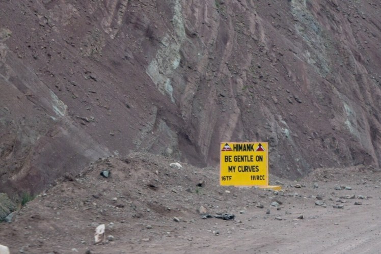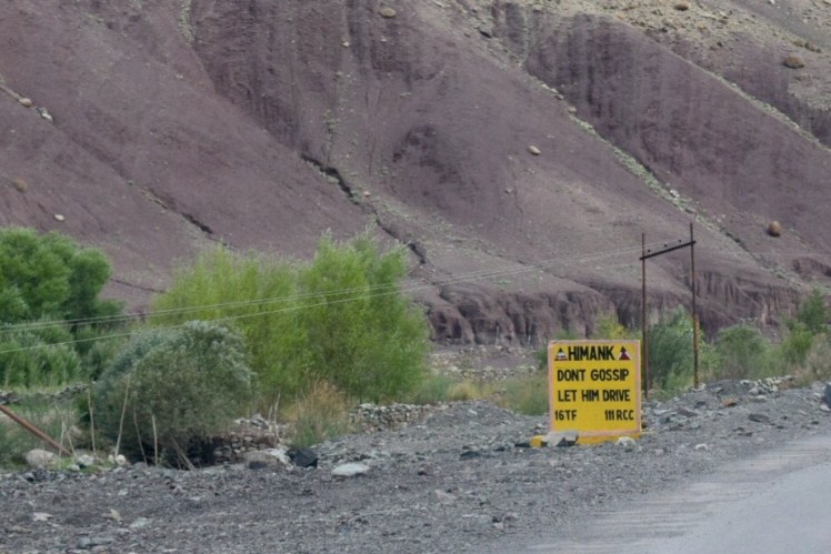 and we were entertained by safety signs as the road wound through the mountains. Perhaps a glimpse into the Ladakhi sense of humor?