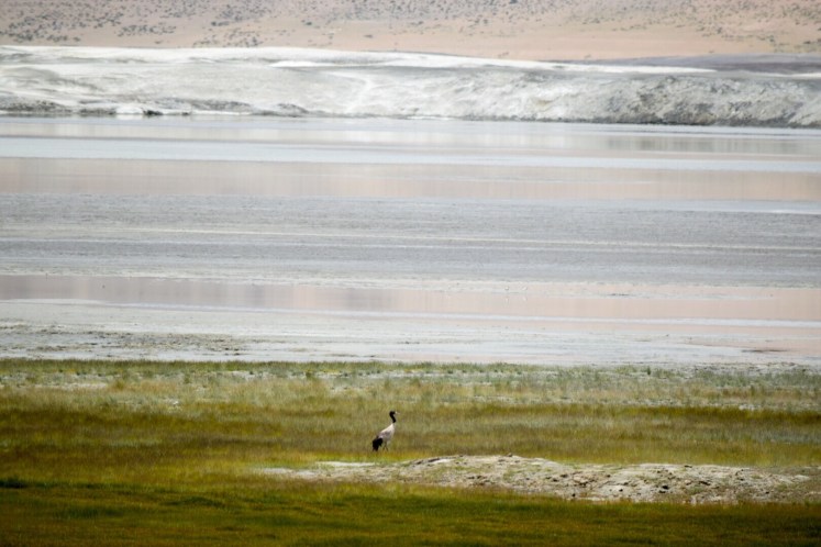 A black necked crane, revered in Buddhist culture and considered the state bird of Kashmir.