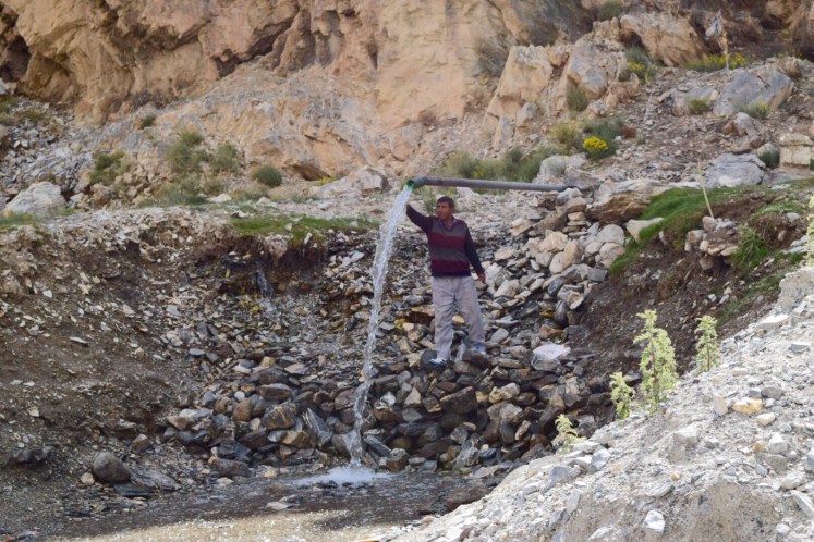 We also had to stop for a water refill. This particular pipe of glacial water was revered for its quality, and vehicles and passersby lined up to fill their bottles, including our driver.