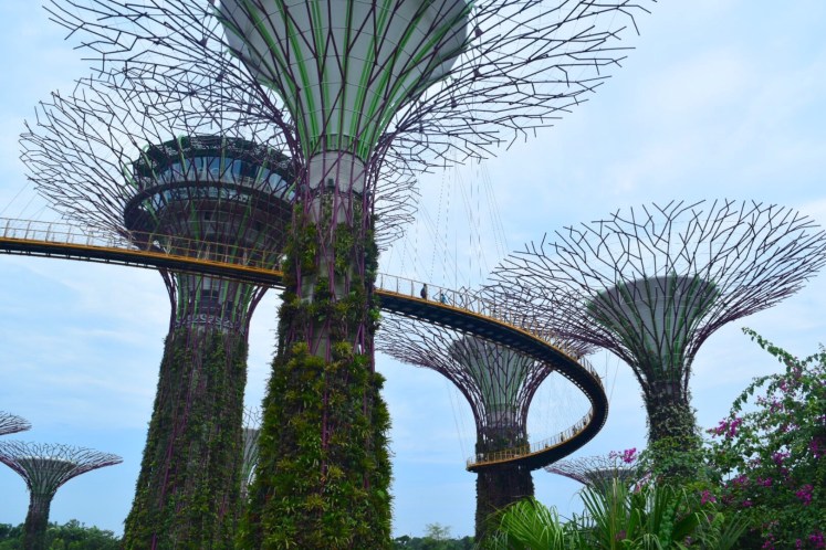 Ironically, outside of the enclosed Cloud Forest were the supertrees – massive steel structures shaped like trees. Actually, the supertrees are responsible for cooling the rain water collected by the Flower Dome and Cloud Forest, as well as housing plants on their trunks, venting hot air, and providing shade.