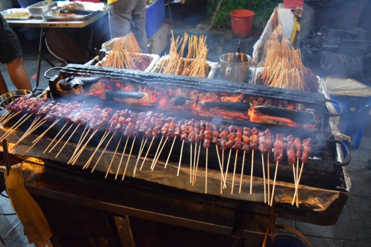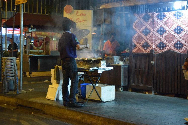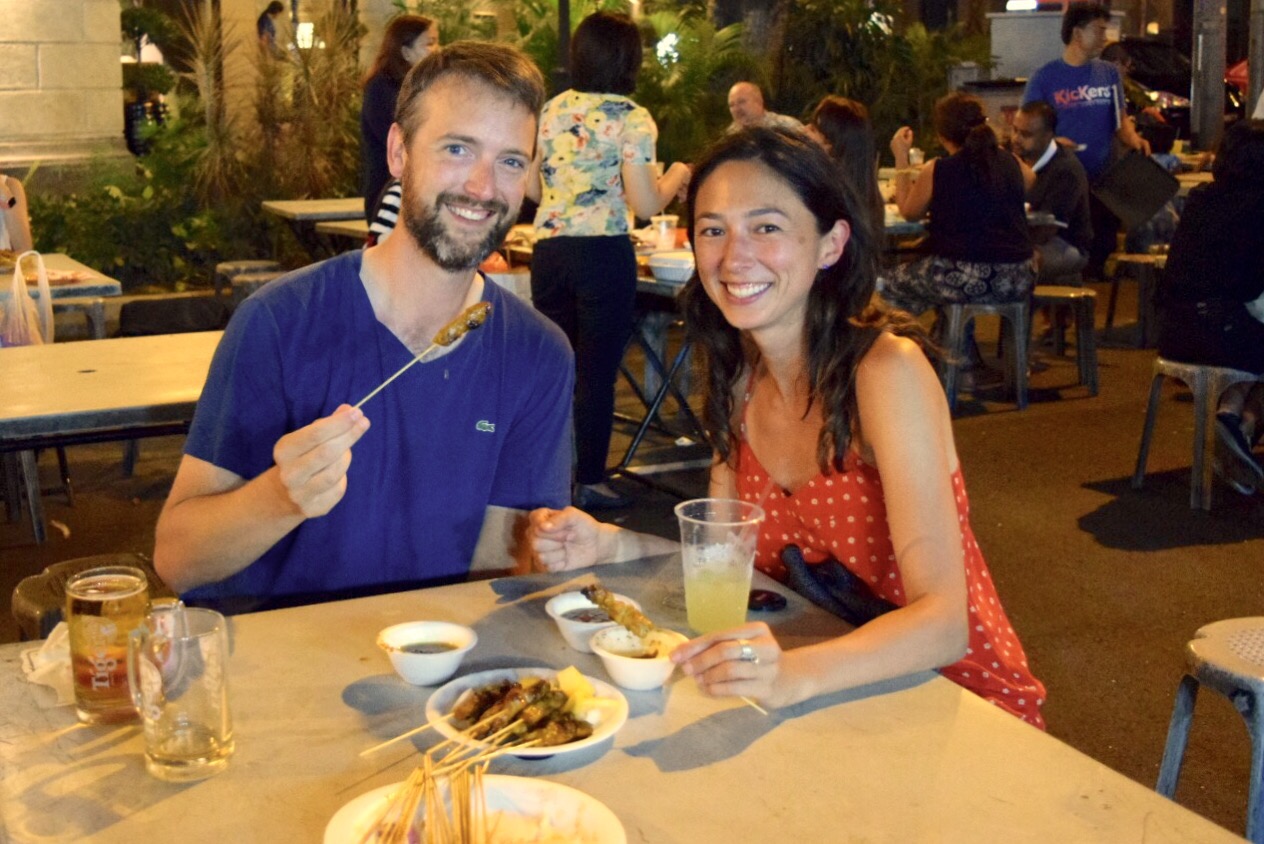 We headed straight for the satay section of the food market. There is satay – grilled meat on skewers served with peanut sauce – on countless American menus. However, here it is completely different and so much better. Acting on a tip from a knowledgeable local, “the best satay is halal”, Jesse quizzed the various satay vendors on their halal credentials with a beer in his hand.