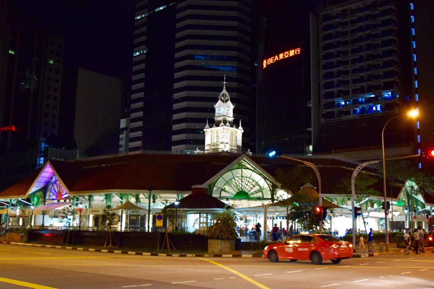 After “walking” through the casino and “walking” through an endless high-end shopping mall we wandered through downtown in search of the real Singapore – the grittier, more interesting underbelly – eventually finding ourselves at Lau Pa Sat, a hawker’s market – well lit, clean, surrounded by skyscrapers.