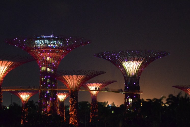And watched the Garden Rhapsody, a synchronized light show in the supertree grove. This version was specially produced in celebration of Singapore’s 50th anniversary, which we missed by about a week.