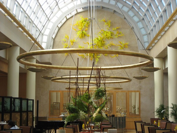 After all the trekking, we were really looking forward to the benefits of some civilization, and Singapore didn’t disappoint. Singapore is civilization on steroids. This wealthy city-state slash tax-haven is clean, orderly, and safe. Continuing our string of luxury digs when the opportunity is available, Jesse used his points to book us the super nice Ritz Carlton. The Ritz has invested about $4 mil on fine art, some of it museum quality, including this beautiful Chihuly in their tea room named after the artist. Like Chihuly’s work, Singapore is colorful, inoffensive, and only rich people can afford it. It was in this beautiful lounge that Jesse had a gin and tonic costing 48 Singapore dollars (35 US dollars). The Singapore Sling was only $25 USD.