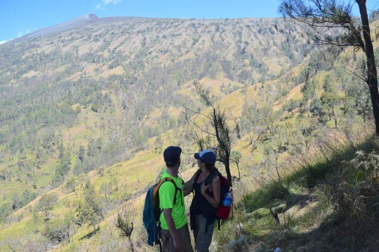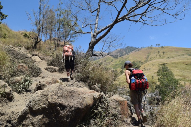 Adi told us it was mostly the Indonesians who were responsible for the littering, as scores of them climb the volcano as a sort of pilgrimage. They would go without porters and travel very slowly, taking a week or more to climb to the top, leaving behind trash. A fair amount of the trash was cigarettes and kreteks, butts and packaging. The Indonesians, including our porters, love to smoke while hiking. We nicknamed Rinjani the world’s highest ashtray. Adi also said most other trekking companies didn’t care about the mountain, leaving trash, and that ours – Green Rinjani – was dedicated to cleaning up the slopes by planting trees and paying porters to bring down bags of trash with each climb. Regardless of responsibility, it seems almost like vandalism of this beautiful mountain, and it made us sad.
