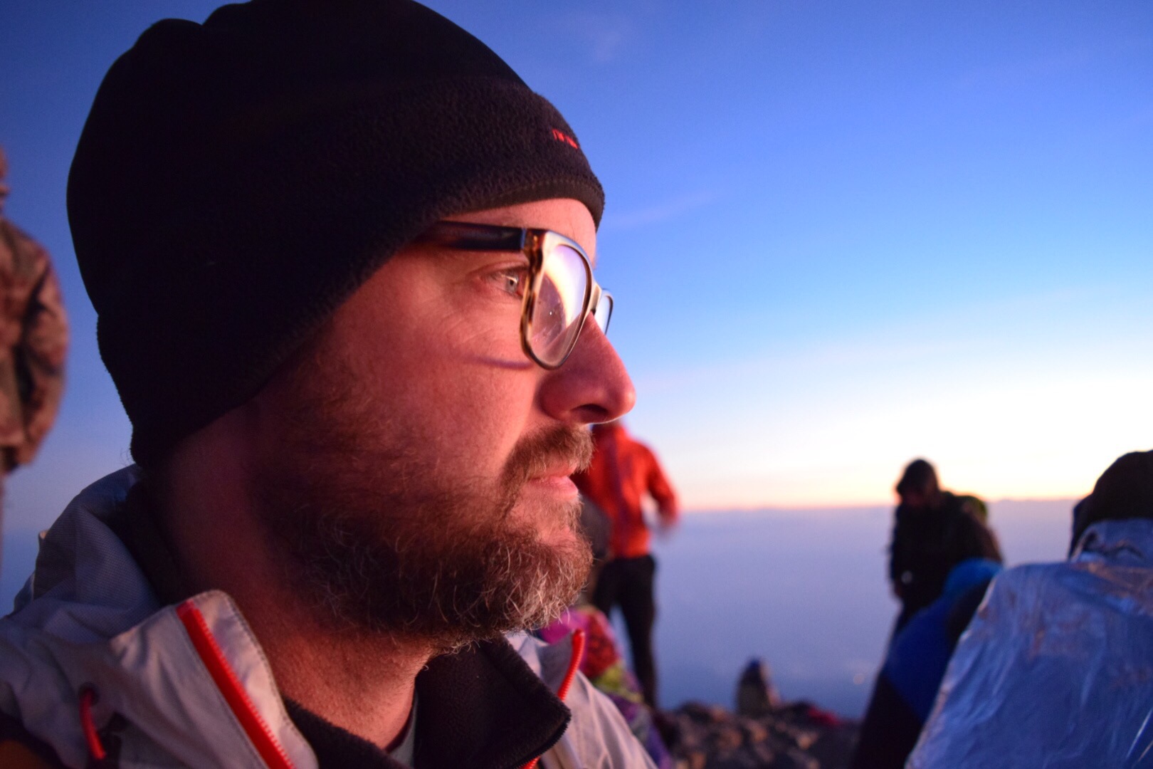 Still, it was an intense workout, and arriving at the top just as dawn began we looked a little rough.
