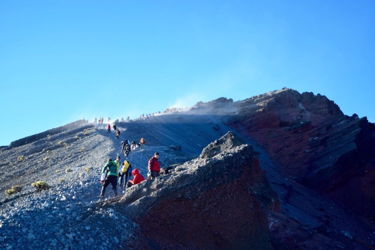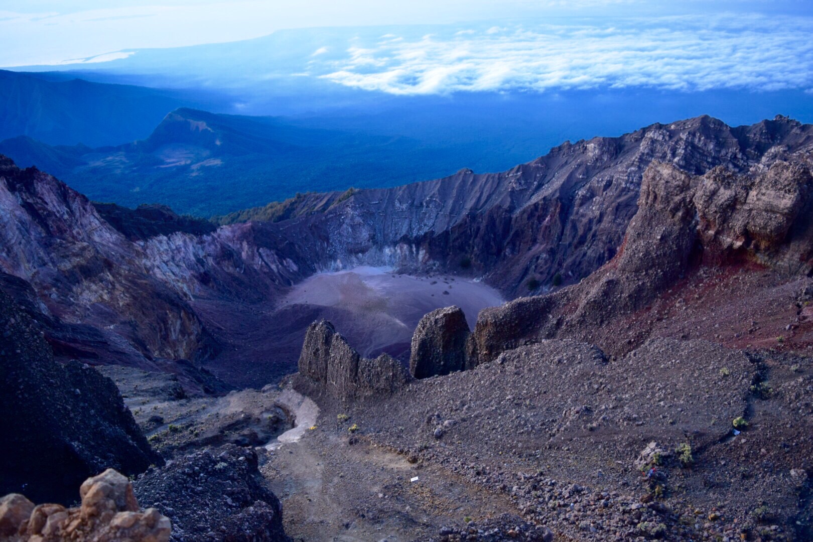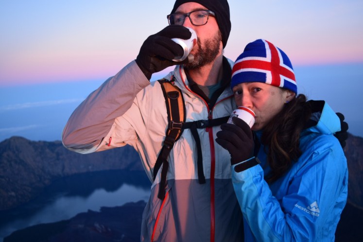 Perhaps it was having already done tough climbing on Kilimanjaro and the Himalayas, or perhaps it was the acclimitization to altitude that helped us. It could also be that most people who climb Rinjani are young and unprepared backpackers on their gap year, trekking in Toms and their layered beach clothes. Whatever the reason, we didn’t find the summit push as difficult as billed. It was simply a long slow trudge through deep volcanic ash and scree, and as long as you accepted that progress would be slow and that it would be cold, it was just a matter of putting your head down and taking one step at a time for a few hours, turning your brain off and your legs into flesh pistons.
