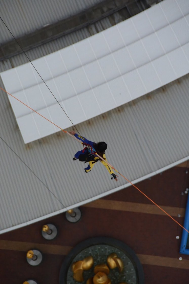 There are multiple safety lines rigged up so that you don’t ricochet back into the building, which I appreciated.