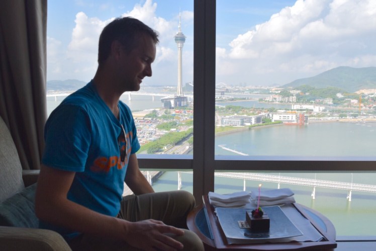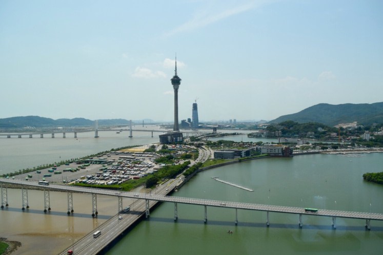 From one Mandarin to another, Jen and I made our way to our hotel. The Macau Mandarin really didn’t have the vibe or atmosphere of the original in Hong Kong. But the views were great. The Macau tower dominates the western skyline.