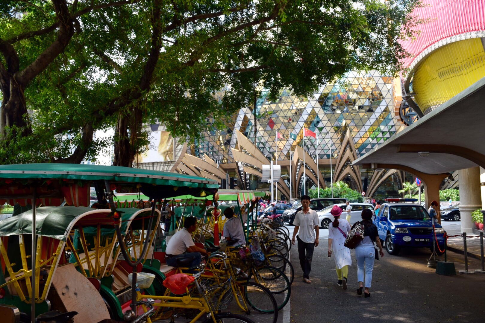 Looking back through the pedestrian streets, a view of Grand Lisboa. In retrospect, it is quite a beautiful and strange place.