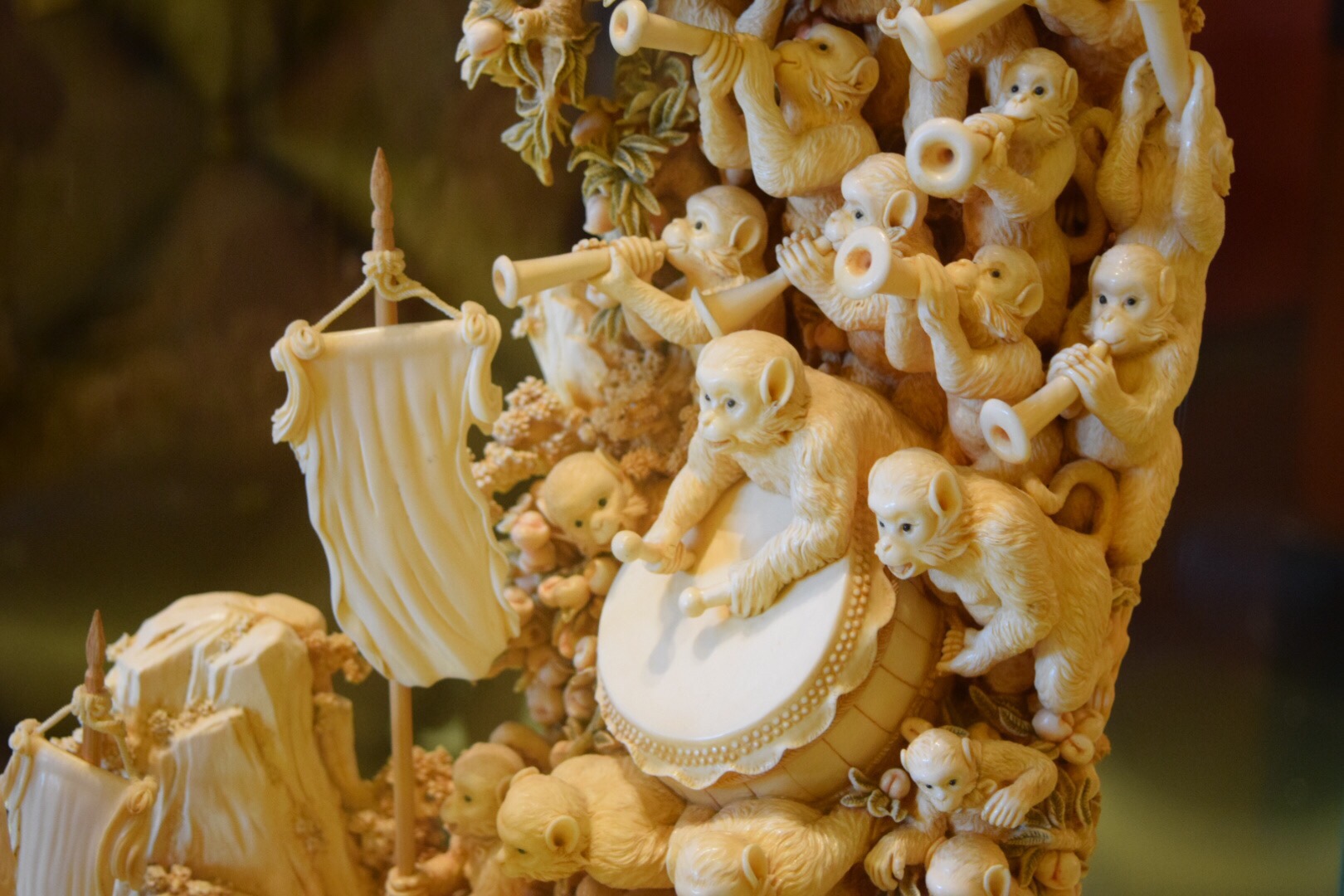 The Grand Lisboa is also know for its strange art collection. There are giant mammoth tusks carved into tiny monkeys playing horns. There was an enormous diamond called the The Star of Stanley Ho at 218 carats. Plus plenty of other absurd art.