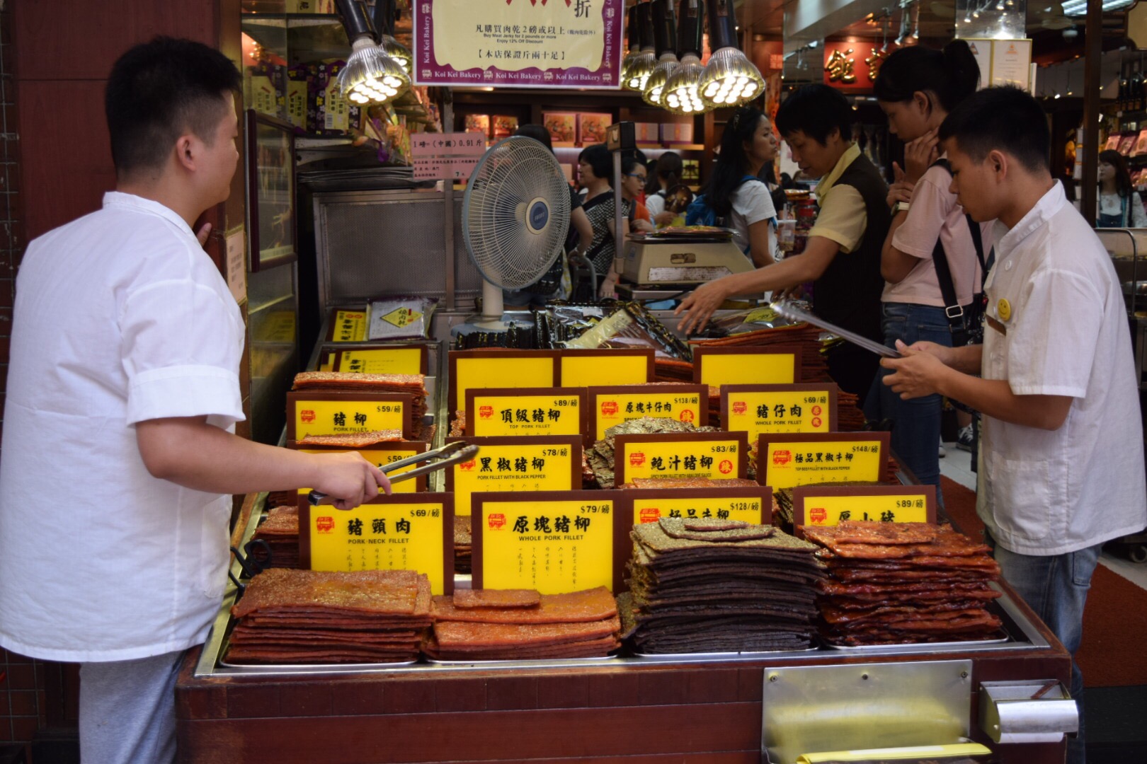 The heat did not deter the Chinese tourists’ appetite for the famous Maccanese Jerky – they cut it into strips for you with scissors. It is delicious.