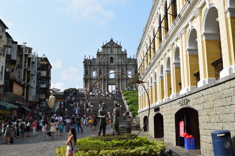 After spending far too short a time in Hong Kong, we were off to Macao. Macao, or Macau, has an interesting history. The peninsula is located near Hong Kong, also on the southern edge of China, and like Hong Kong was under the governance of a European country. The Portuguese held Macau as a trading colony from the 1550s until authority was transferred back to China in 1999. Since then, gambling and casinos have become Macao’s claim to fame. Hundred’s of thousands of tourists (mostly Chinese) flock to Macao for a bit of baccarat therapy. The city offers a dichotomy of old-world European historical UNESCO sites and Vegas style gambling and luxury shopping. The partying is not anywhere near the level of Vegas, as orange juice is the beverage of choice.