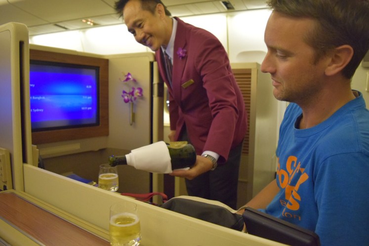 Utterly relaxed, we boarded our next flight from Bangkok to Sydney. More Dom awaited us.