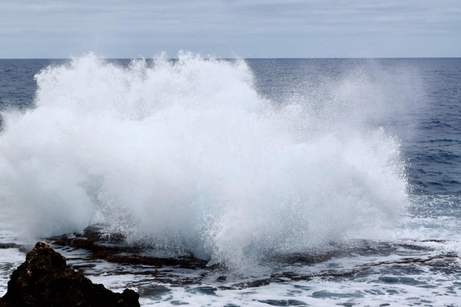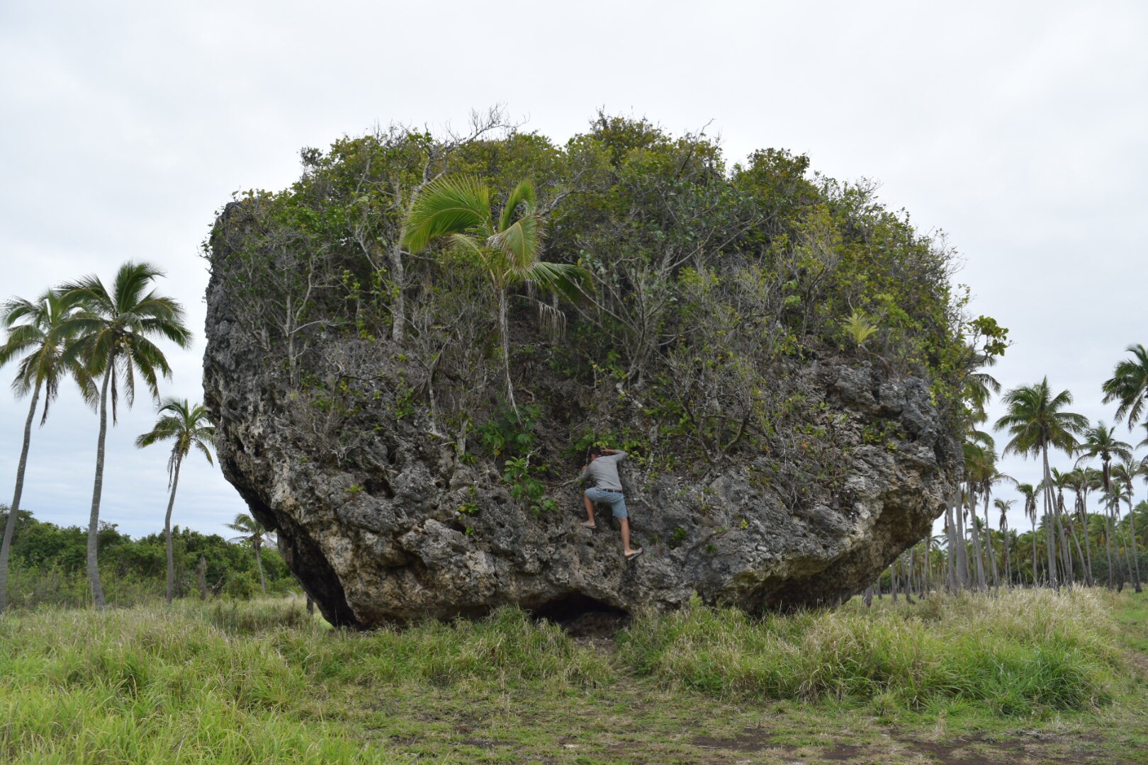 We climbed “tsunami rock” so named because it was hypothesized that this size rock had to have been dropped down by a tsunami. Our theory is that softer rock surrounding this nugget of fossilized coral was eroded away.